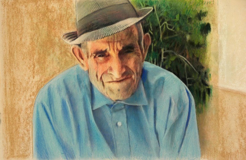 Rosario, in distinto abito nero si muove grossolano, parlando forte e sconnesso sulla strada bianca di luce. Tra due file di case basse e quadre, nel giallo polveroso di terra. Guarda, dietro gli occhiali a specchio, ogni raro passante. Gli si rivolge, gesticola, sembra aggredirlo. Nel suo intimo, tuttavia, non vi è protervia. Dice parlando a caso, sparando al sole. Lo guardano di rimando, gli occhi s'interrogano, chiedendo tranquillità.